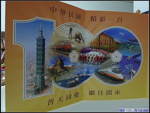 100.09.08 中央銀行發行的慶祝建國一百年壹佰圓券三開典藏版今年年初發行第一版時就造成大轟動。此刻發行第二版,依舊一樣大排長龍!中華民國建國一百年,極具紀念性的精彩100。第二版的風景101還是主軸,大霸尖山、澎湖雙心石滬與玄武岩更具象徵意義!感謝二姐夫的辛苦排隊,讓妞家也有機會可以買到!超開心可以在100年的雙十前夕,獲得紀念性的套幣。